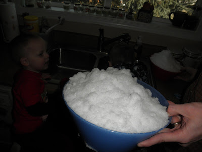 Jack still isn't the best at using utensils so his has were freezing by the time he was done playing.