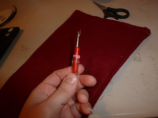 Then I started working on the cuff...I followed the pattern for this part and used batting. The pattern said to use batting for the body of the stocking as well, but that was because she was using just plain fabric. I figured since I was using felt it wouldn't be necessary. After stitching the batting and the Christmas fabric together I stuffed them into the stocking and sewed them together. Except this is what happened...
