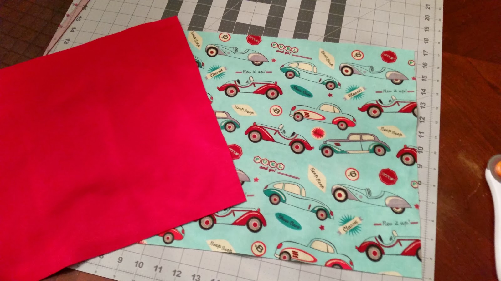 I pinned the cars in place and sewed them down. I was really nervous the fabric would shift and be crooked, but thankfully all went well.