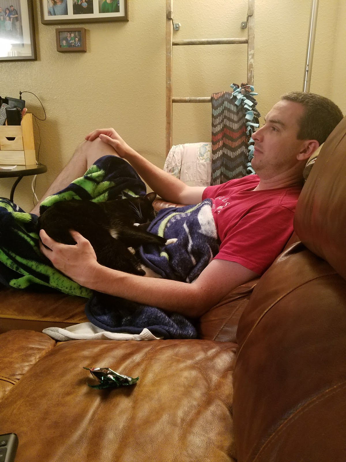 Zeke would not let go of Michael he just kept hanging on and giggling his nervous giggle.