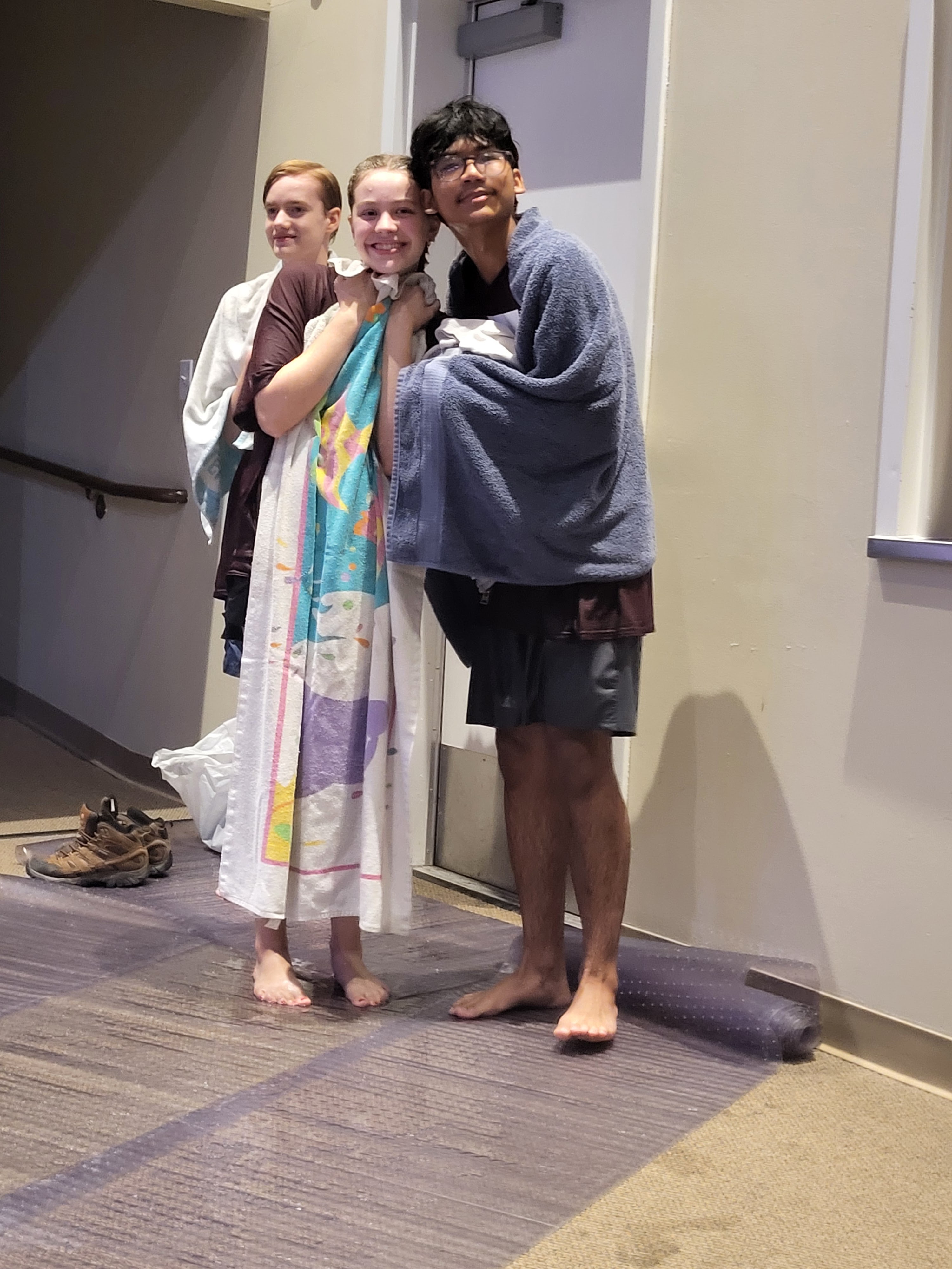 Once they were baptized they hung out on the mats off to the side so they could watch the other people get baptized.