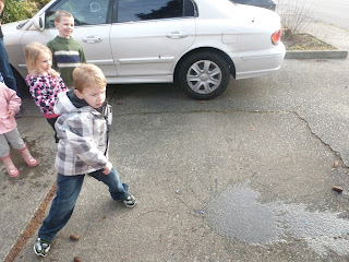 We just let the kids jump off the plank and then marked the spot with chalk. Owen and Jack were the ones that jumped the farthest so Christina (Caleb's mom) and I helped Lilyann cheat so she won that game. Her prize were these cool rocket darts.