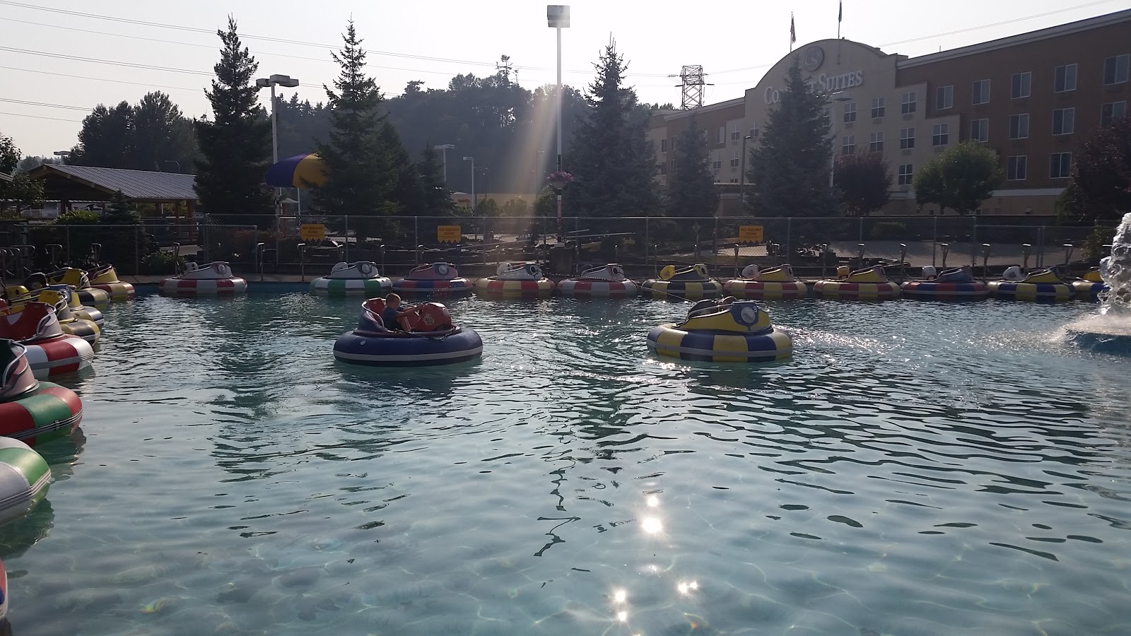 I wasn't sure how the boys would do with driving the boats, but they did great. I had actually forgotten about the sprayers...I just thought you ran into each other like regular bumper boats.