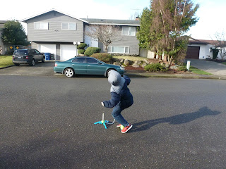 Jack tried all kinds of different ways to stomp on it, but most of the time it didn't work very well since he'd only land on the side! Cute kid!!!